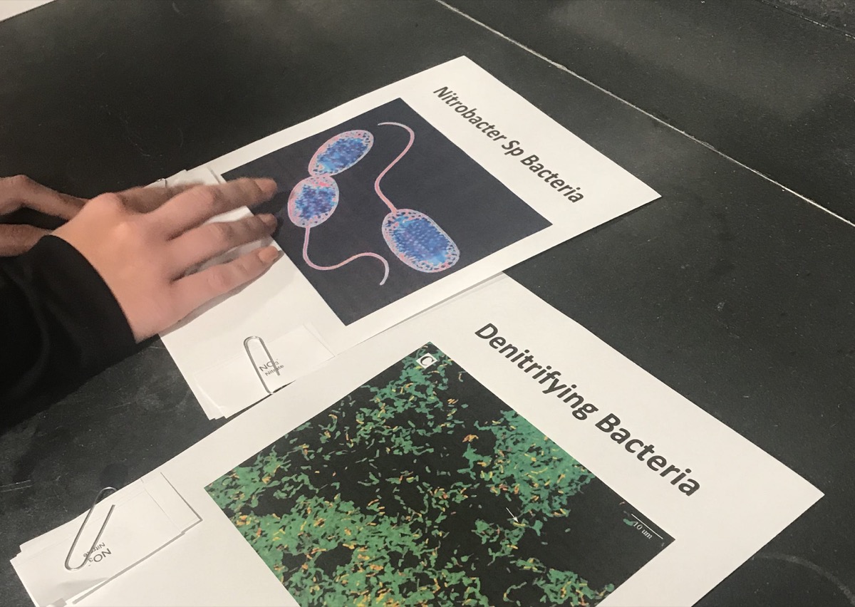 Pippert’s class talked about cycles in general and then specifically the nitrogen cycle. After doing a general activity covering different areas of the nitrogen cycle, Pippert introduced the nitrogen cycle game, showing how nitrogen changes forms within earth’s atmosphere and how it interacts with the lithosphere, biosphere, and hydrosphere. Students role-played forms of nitrogen and interacted with bacteria to see how nitrogen compounds change, to show how differently nitrogen reacts in soils compared to the other common nutrients, phosphorus and potassium.