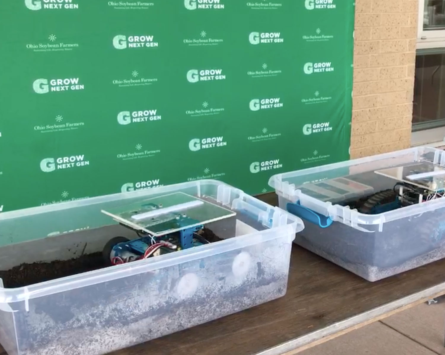 Students determine a program that will allow robots to create soil compaction in bins of soil.
